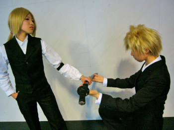 ネタ@ 兄(ミュンヘン)に刀を謙譲する弟(マフィア) よくみたら抜き身を素手で持っている二人。 さ、さすがエルリック兄弟!!(違) |