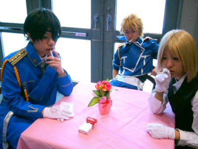 なぜか三人でタバコで談合。