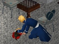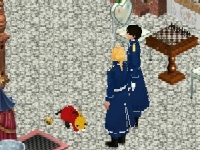 エドとロイが仕事から帰ってくると、エド猫が迎えに来ます。 エド:ただいまv良いこにしてたか? エド猫:にゃーv ロイ:………私には? ロイは完全無視な方向で。 |